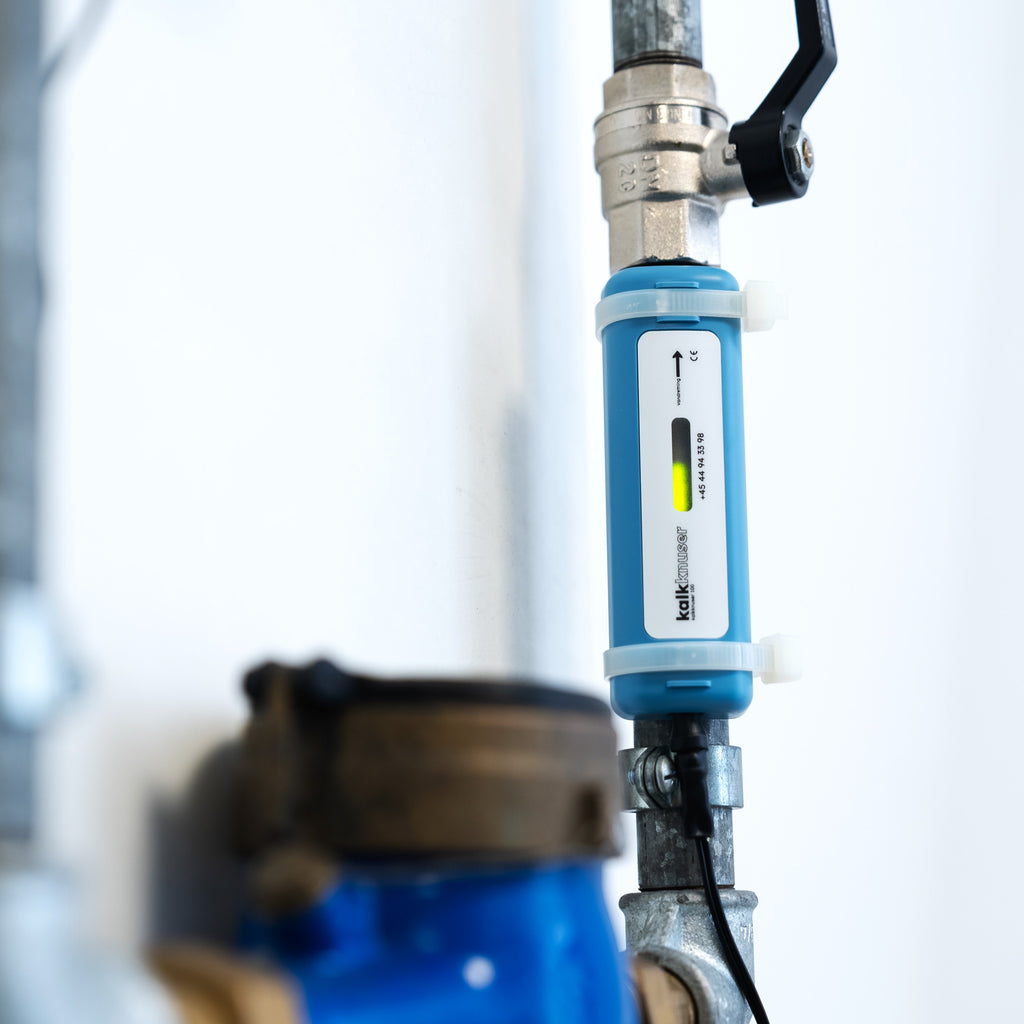 Ved hjælp af de medfølgende strips kan du let montere Kalkknuseren på dit vandrør. For den bedste effekt, monteres Kalkknuseren på koldtvandsrøret med indgående vand lige efter vandmåleren. Såfremt der er en digital vandmåler uden skovlhjul kan Kalkknuseren også påsættes før vandmåleren. Kalkknuseren kræver 130mm glat rør uden samlinger med en max diameter på 3.5 cm. Det er vigtigt at enheden sættes HELT tæt til røret. Enheden kan ikke monteres på plastikrør.